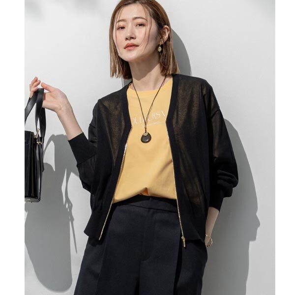 > 23区【洗える】ライトシアーニット ブルゾン 黒サイズ・38(Mサイズ)新品・カーディガン・パーカー