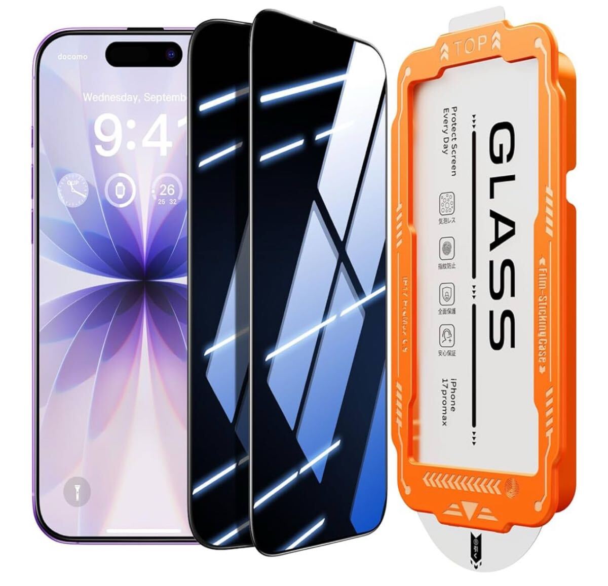 > Zeniss iphone 17 ガラスフィルムに適合する 覗き見防止 【米軍No.1規格航空材料&独創的なガイド枠】 2枚セット 保護フィルム