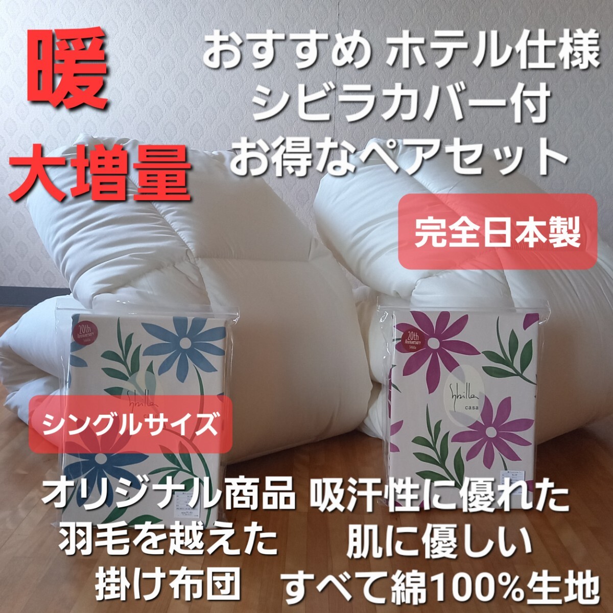 > ホテル仕様 羽毛を越えた 増量 掛け布団&シビラカバー付 ペアセット 清潔 安心 日本製(羽毛布団 敷き布団 こたつ布団 枕 シビラ カバー)
