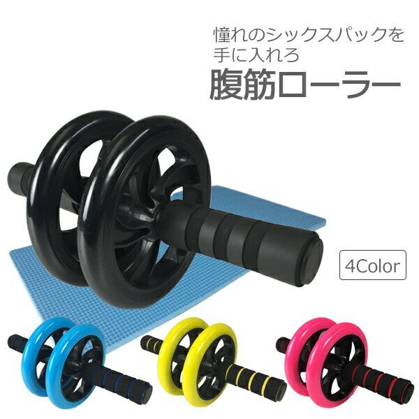 - 訳あり処分品◇腹筋ローラー Wホイール マット付き 静音 男性 女性 ダイエット 筋トレ トレーニング###瀬ローラーJFR色ラ###