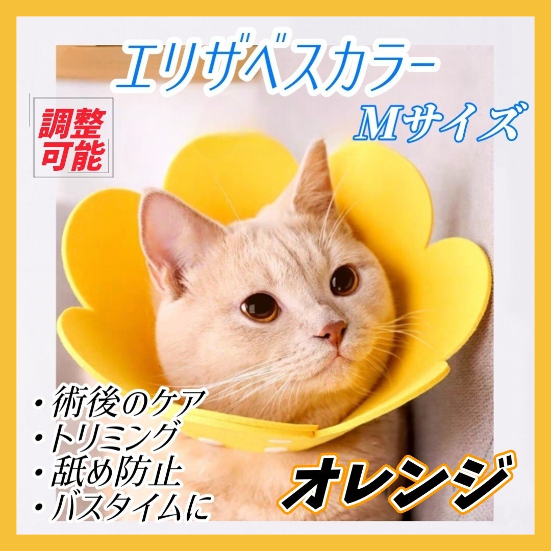 > ② エリザベスカラー オレンジ Mサイズ フラワー型 猫 犬 軽量 フェルト生地 柔らかい 引っ掻き防止 舐め防止 かゆみ 手術後 保護 ペット