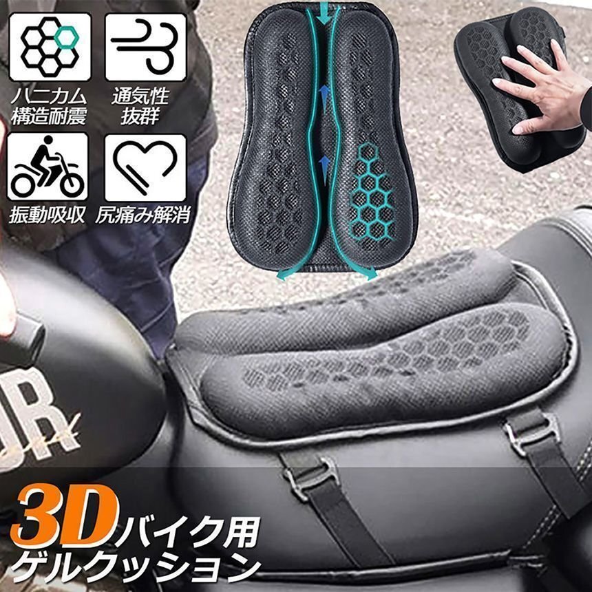 - バイク シート クッション ゲルクッション ゲルシートカバー 3D メッシュシートカバー 四季通用 通気 衝撃吸収 人間工学 断熱