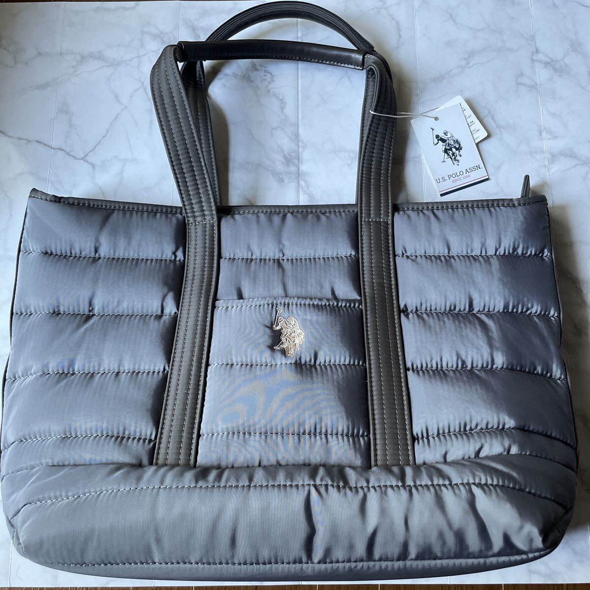 > U.S. Polo Assn.、キルティングトートバッグ【縦→約32㌢、手持ち入れると縦→約53㌢、横→約46㌢、奥行→約16㌢】バッグ、新品