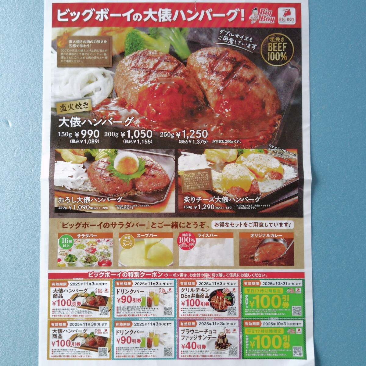 - 11月3日迄 ビッグボーイ クーポン 割引券 外食 お得 ドリンクバー 割引 ハンバーグ 平日 17時以降 割引 ブラウニーチョコ