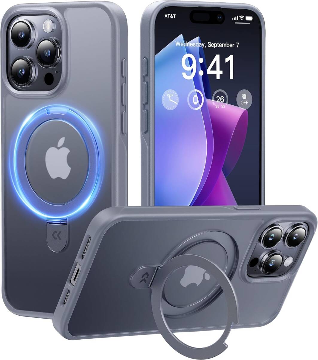 > 【2024必見!4in1多機能満載】CASEKOO iPhone 15 Pro Max 用 ケース 米軍MIL規格 耐衝撃 MagSafe対応 隠しスタンド 指紋防止 (グレー)