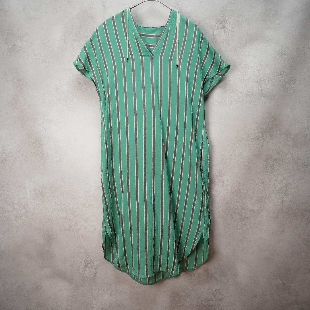 - COMME CA チュニック グリーン #9 フード ノースリーブ ストライプ