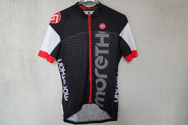 > morethan/モーゼン/サイクリングトップス/半袖/やや薄手素材/速乾性/前ジップアップ/後裾ポケット/自転車/黒/ブラック/Lサイズ(10/9R7)