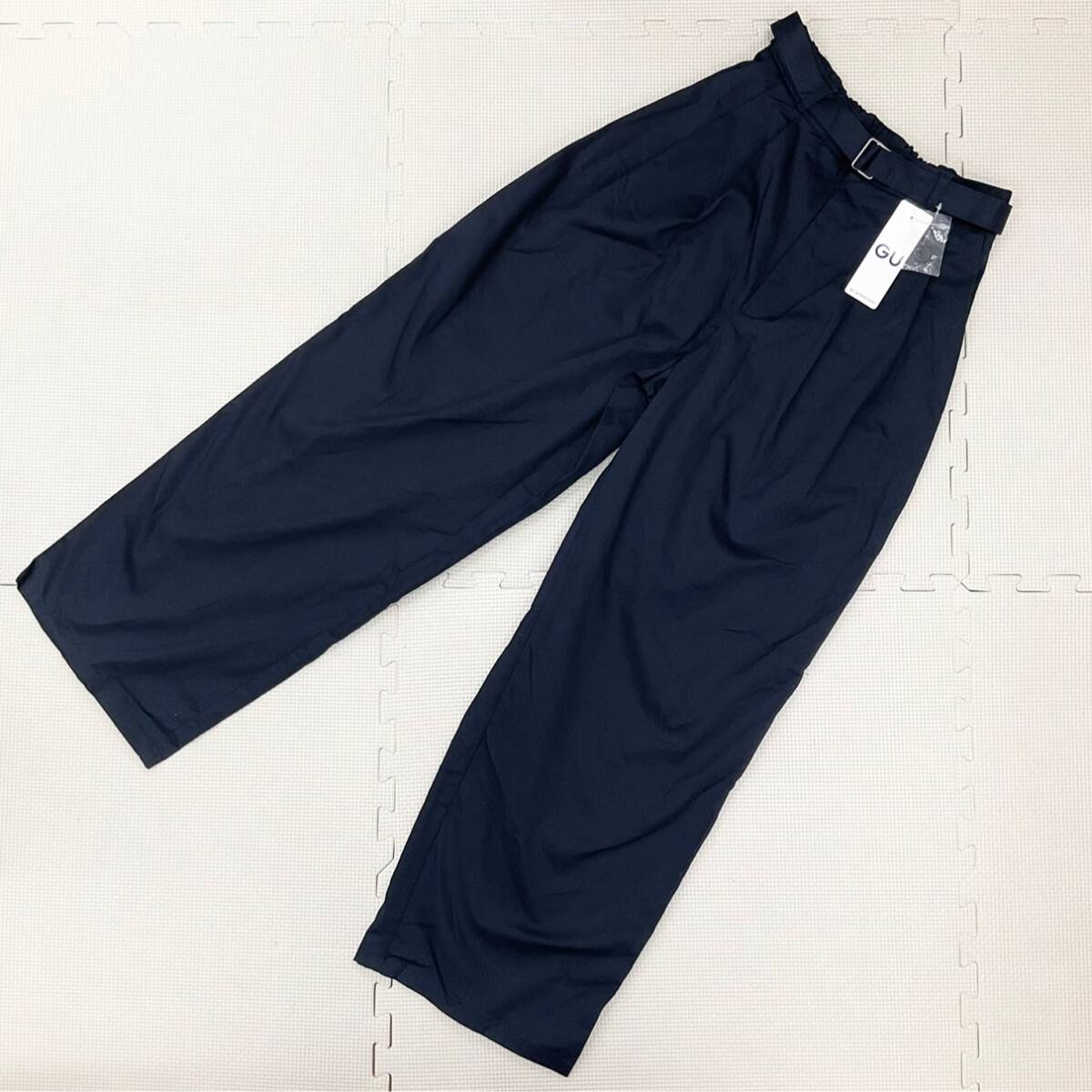 > (未使用品/訳あり)(K)【チノハイウエスト ボリュームパンツ】レディース パンツ サイズ M ◆W62~68◆紺/ネイビー◆GU◆
