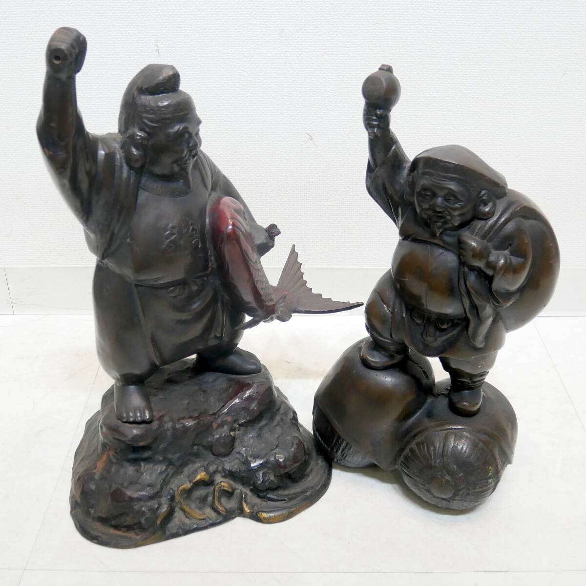 > ▲(R710-H84) 恵比寿 大黒天 2点まとめ 七福神 鉄製 置物 オブジェ アンティーク 骨董 縁起物 昭和レトロ