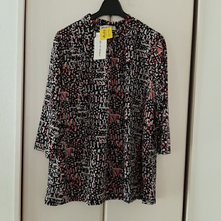 - 新品タグ付【LLサイズ】七分袖 ハイネック カットソー ミセス レディース ポリエステルブラウス ゆったり 黒 ピンク ② 船場ニット 118300