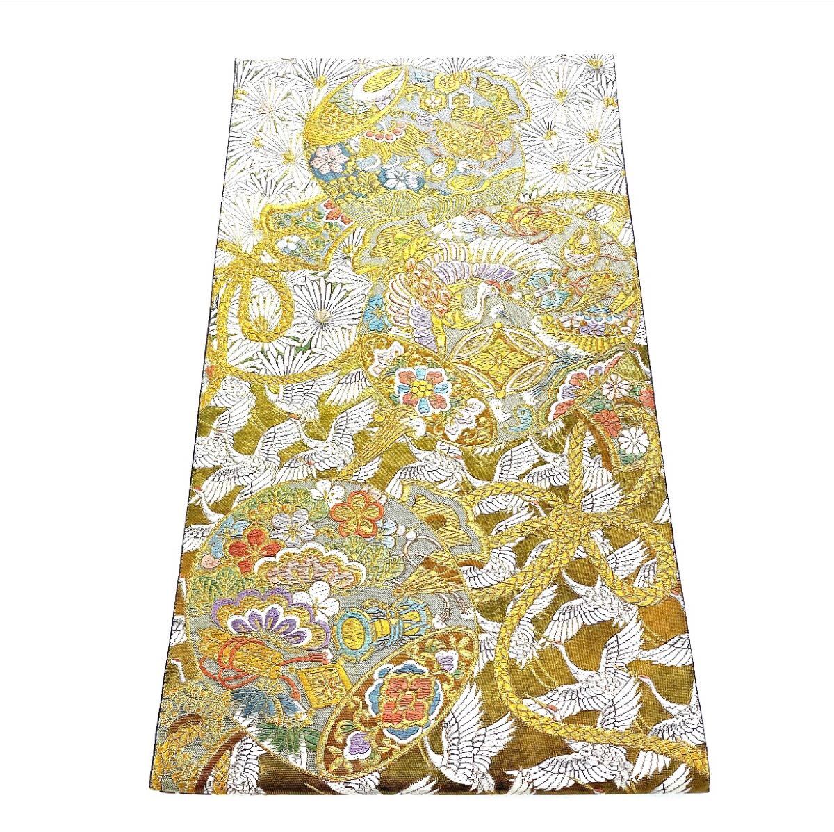 - 帯70 黄金箔 高級 正絹 全通 袋帯 未使用 宝尽くし 鶴 松竹梅 zwzjupb