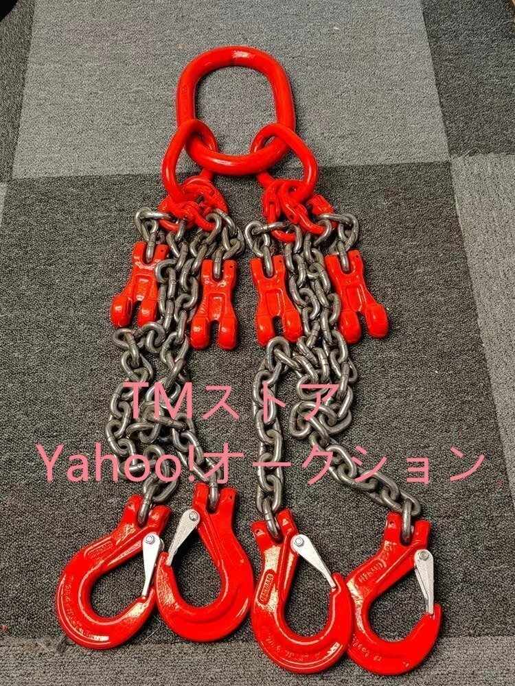 - 品質保証★運搬作業用に チェーンスリング スリングフックタイプ G80マンガン鋼製 使用荷重5t 4本吊り ェーン径8mm 長さ1.5m 調節器