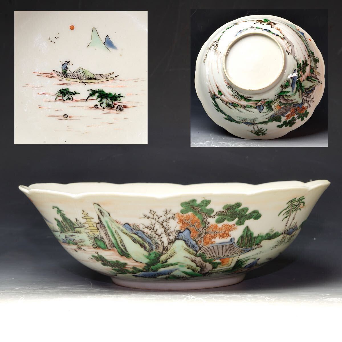- 中国古美術 時代物 陶磁器 茶碗 骨董品 山水人物 菓子器 清時代 煎茶道具 茶器大鉢 粉彩