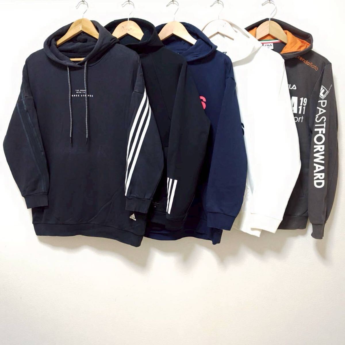 - お得!!【まとめ売り】パーカー 5着 セット スウェット adidas FILA アディダス フィラ スポーツ ジム トレーニング ゴルフ M /SWP-64ji
