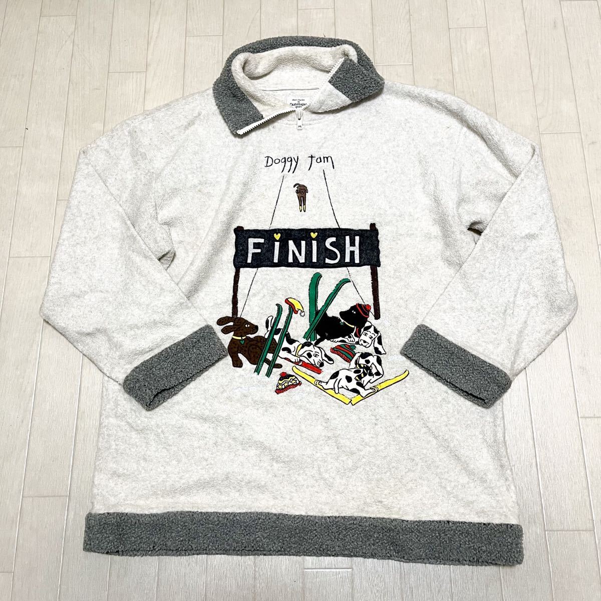 - 和856★ CASTELBAJAC カステルバジャック ボアフリース プルオーバー ジップネック 刺繍 長袖 2 ホワイト グレー メンズ