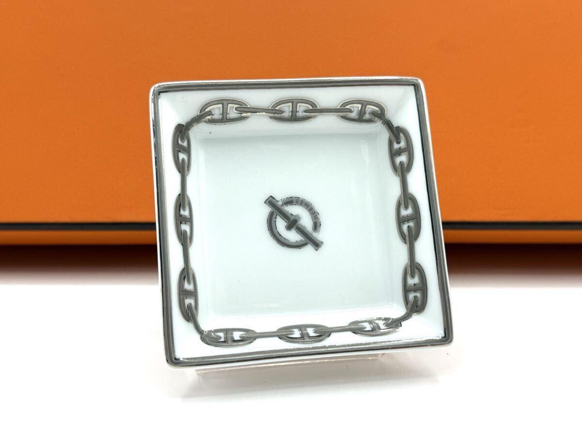 - 美品 HERMS エルメス 小皿 シェーヌダンクル ミニトレイ 食器 ブランド食器 中古品 皿 プラチナ アッシュトレイ 灰皿 小物入れ