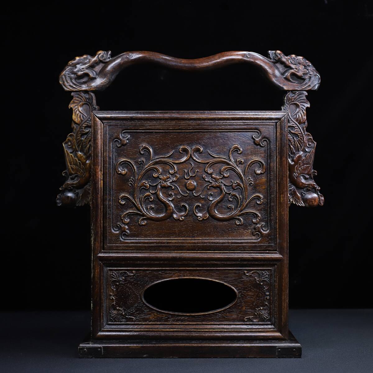 - 旧蔵 清 花梨木 抽拉蓋 彎梁提箱 置物 木製 極細工 中国古玩 骨董品 古美味 210