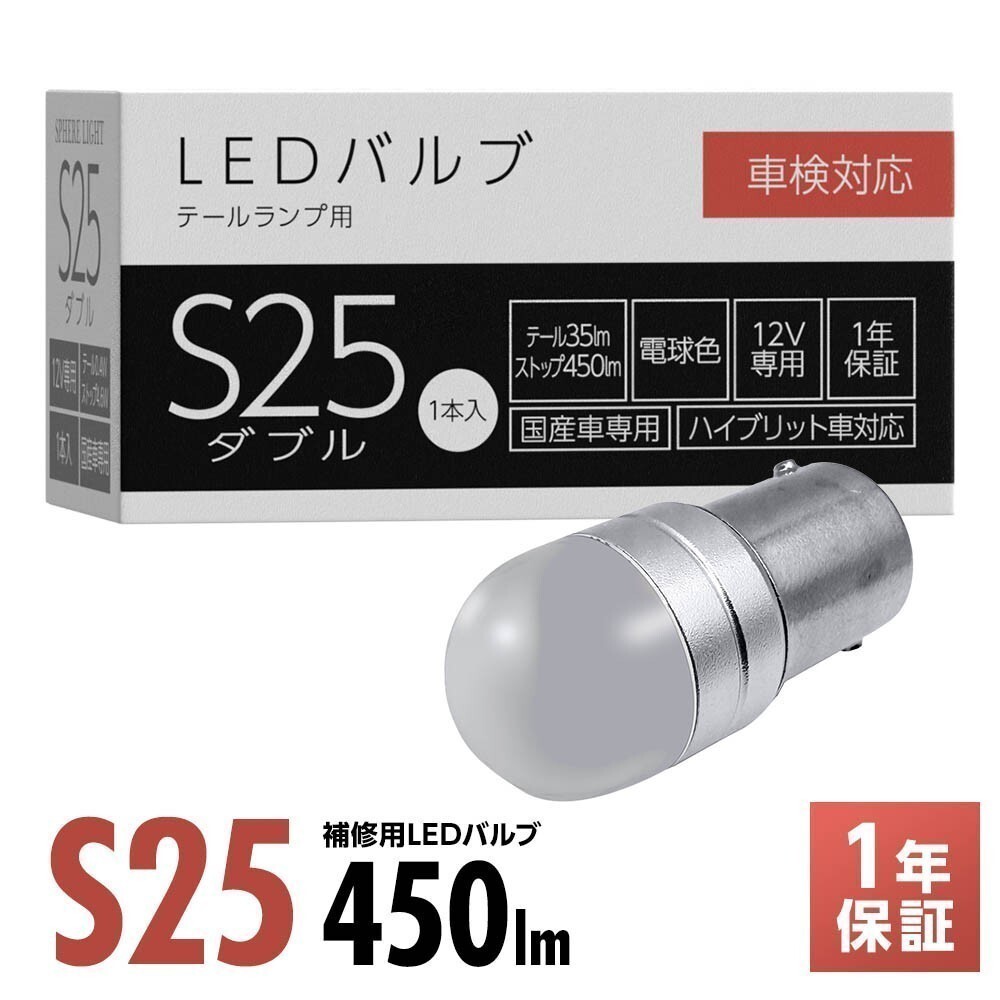 > スフィアライト テールランプ 専用 補修用LEDバルブ S25 ダブル 電球色 1本 テール 35lm ストップ 450lm 1年保証 車検対応 SLHOS25D