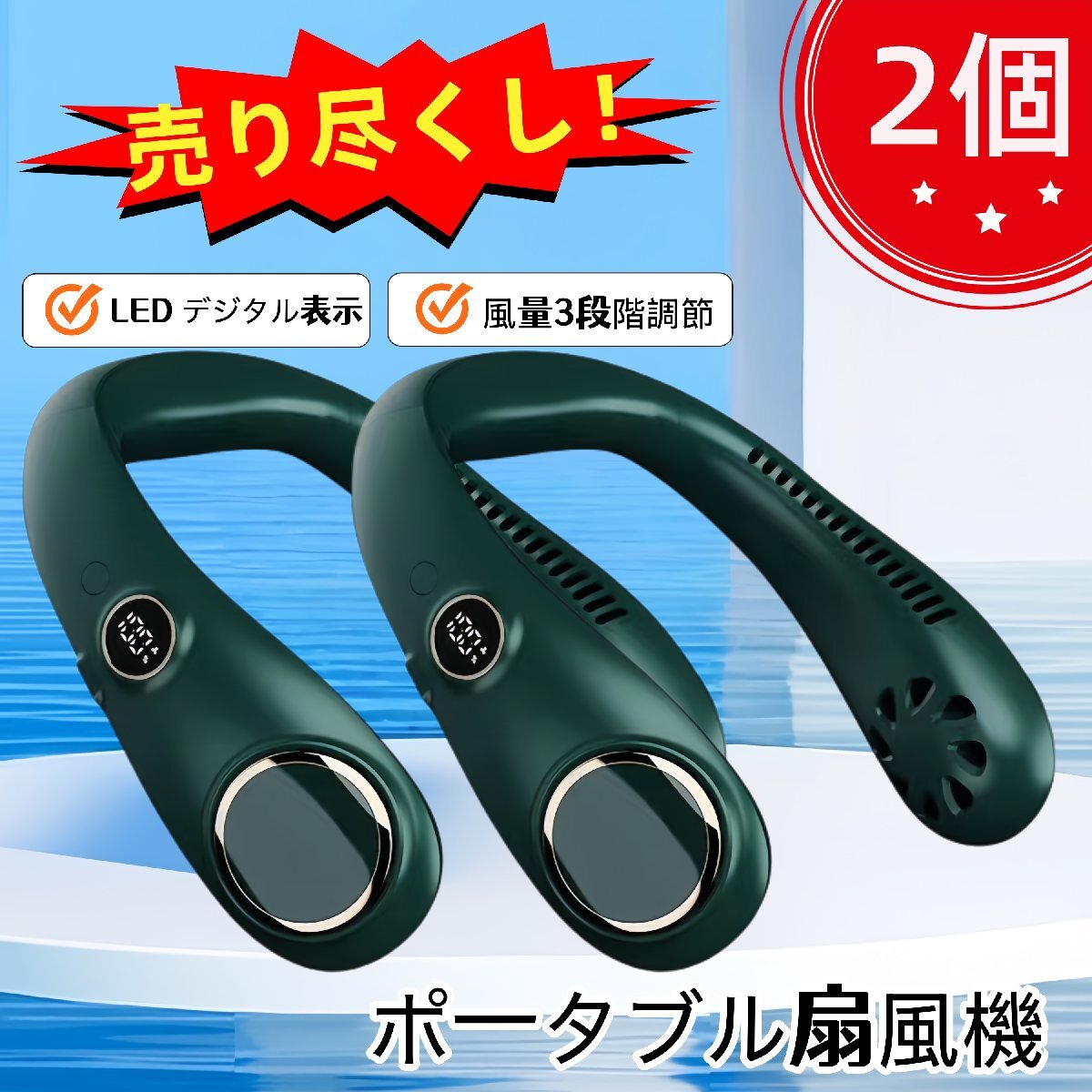 - 2個 最新 DCモーター使用 騒音対策 ネッククーラー ネックファン fan ウェアラブル 携帯 ハンディ 首かけ扇風機