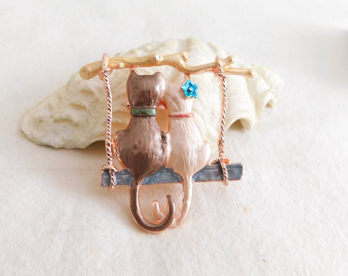- 【新品】ネコのブローチ カップル ブランコ かわいい 猫 ブローチ