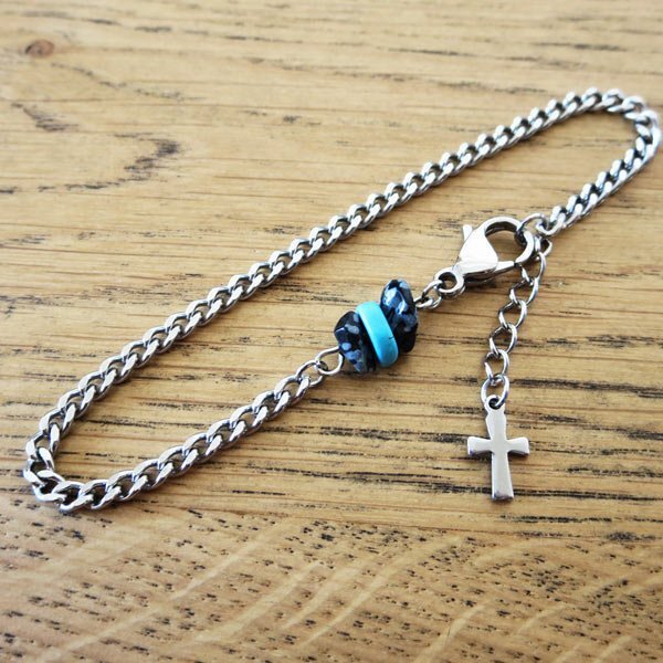 - ステンレスブレスレット スノーフレーク&ターコイズカラー FN71 全長約21cm(18+3cmアジャスター)