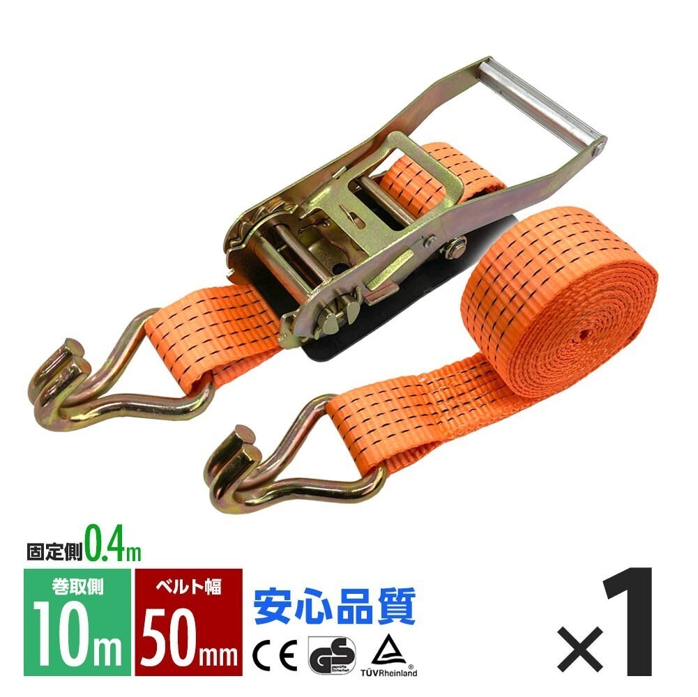 - ラッシングベルト フック トラック 幅 50mm ラチェットベルト ラチェット式 固定側0.4m 巻側10m 荷重2000kg タイダウンベルト 1本 1年保証