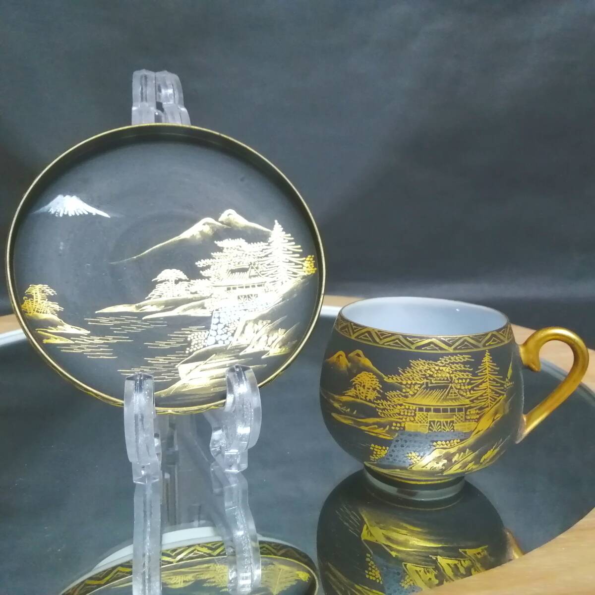 - オールドニッポン◇自宅保管 九谷 キャビネット カップ&ソーサー 金彩上富士図紋 ハンドペイント 里帰り 4-1