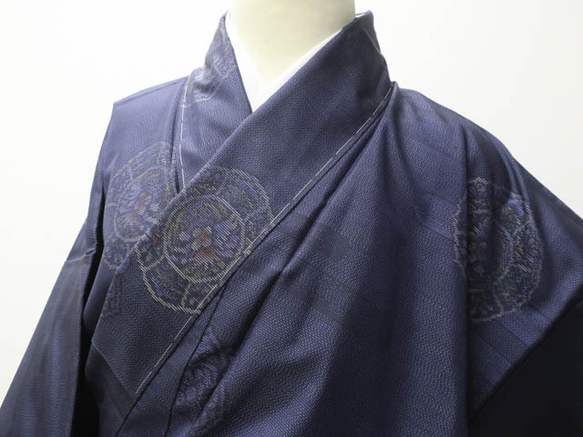 > 《京都一輝堂》【着物】紬 霞に丸花文 身丈157cm 裄丈約64cm 25z01-387