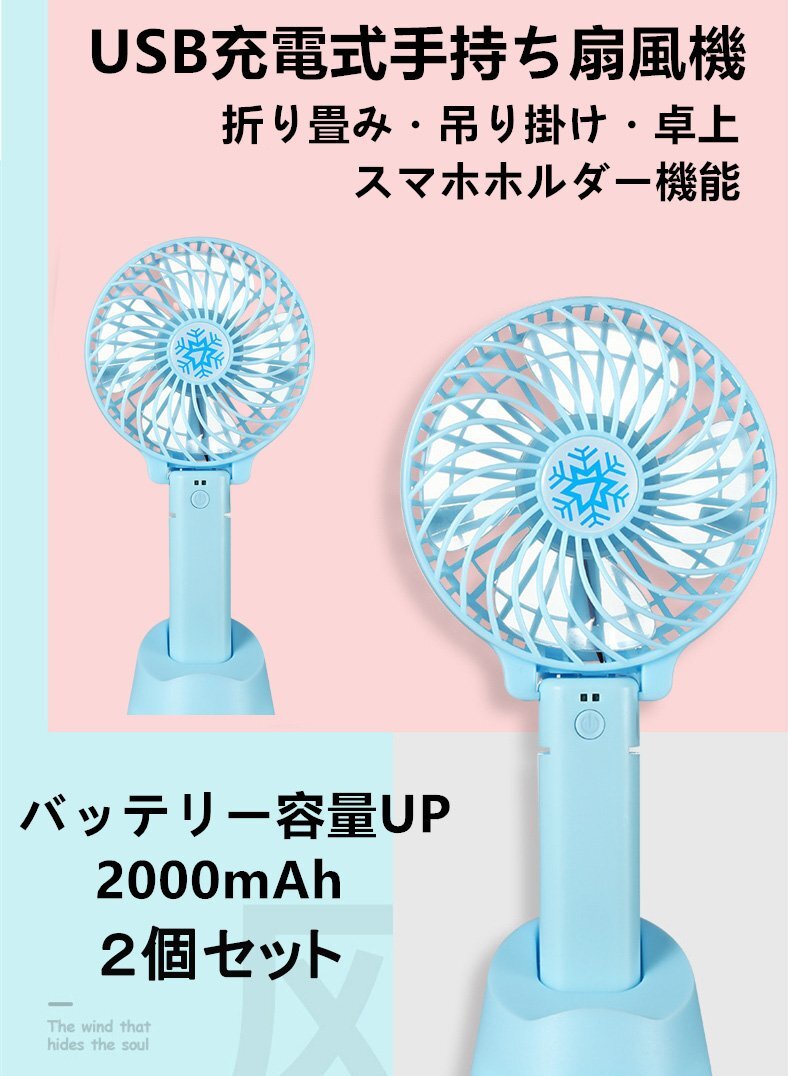 - 2個 USB充電 2way 扇風機 手持ち ミニ扇風機 ファン ハンディファン 軽量 ミニファン クーラー サンキューレター