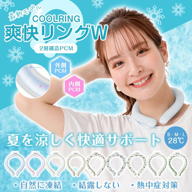 - 送料無料 爽快リング 2023 最新 改良版 2層 PCM素材 4倍長持ち 28℃ 自然凍結 熱中症対策 ネッククーラー 接触冷感 首掛け 夏 子供 ny623-m