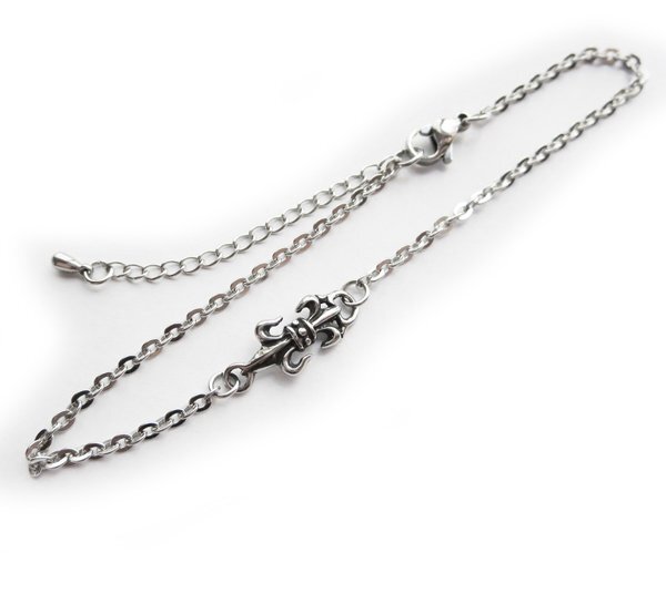 - ステンレスチェーン ゆりの紋章アンクレット 26cm(22+4cmアジャスター) 2.4mm幅平小豆 FN183C