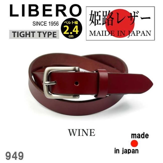 - ワイン リベロ 949 日本製 姫路レザー タイト 牛革 一枚革 ベルト 2.4cm