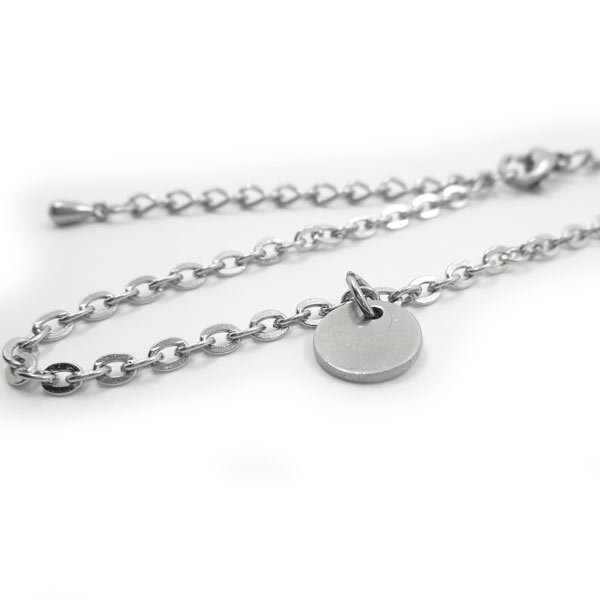 - ミニ円形チャーム付き アンクレット ステンレスチェーン 平小豆 幅2.4mm 27cm(23+4cmアジャスター)