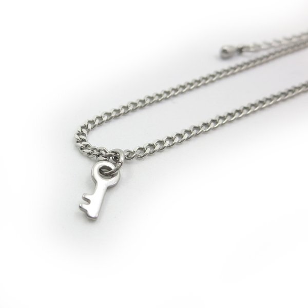 - ステンレスチェーンアンクレット喜平2面2.2mm ミニ鍵チャーム付き 25cm(21cm+4cmアジャスター)