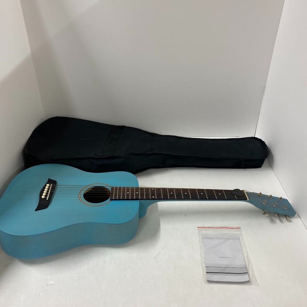 - 08w13218★1円~【動作未確認ジャンク品】S.Yairi / Sヤイリ アコースティックギター 水色 YM-02/UBL ミニギター 弦楽器 ケース付 中古品