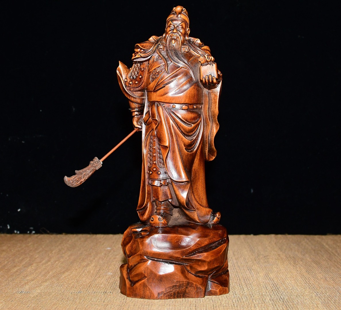 - 【超珍館蔵】黄楊木製 細密彫 關公 擺件 仏具 宗教 置物 賞物 古賞物 古董品 古美術品 時代物 旧家蔵出 稀少珍蔵品