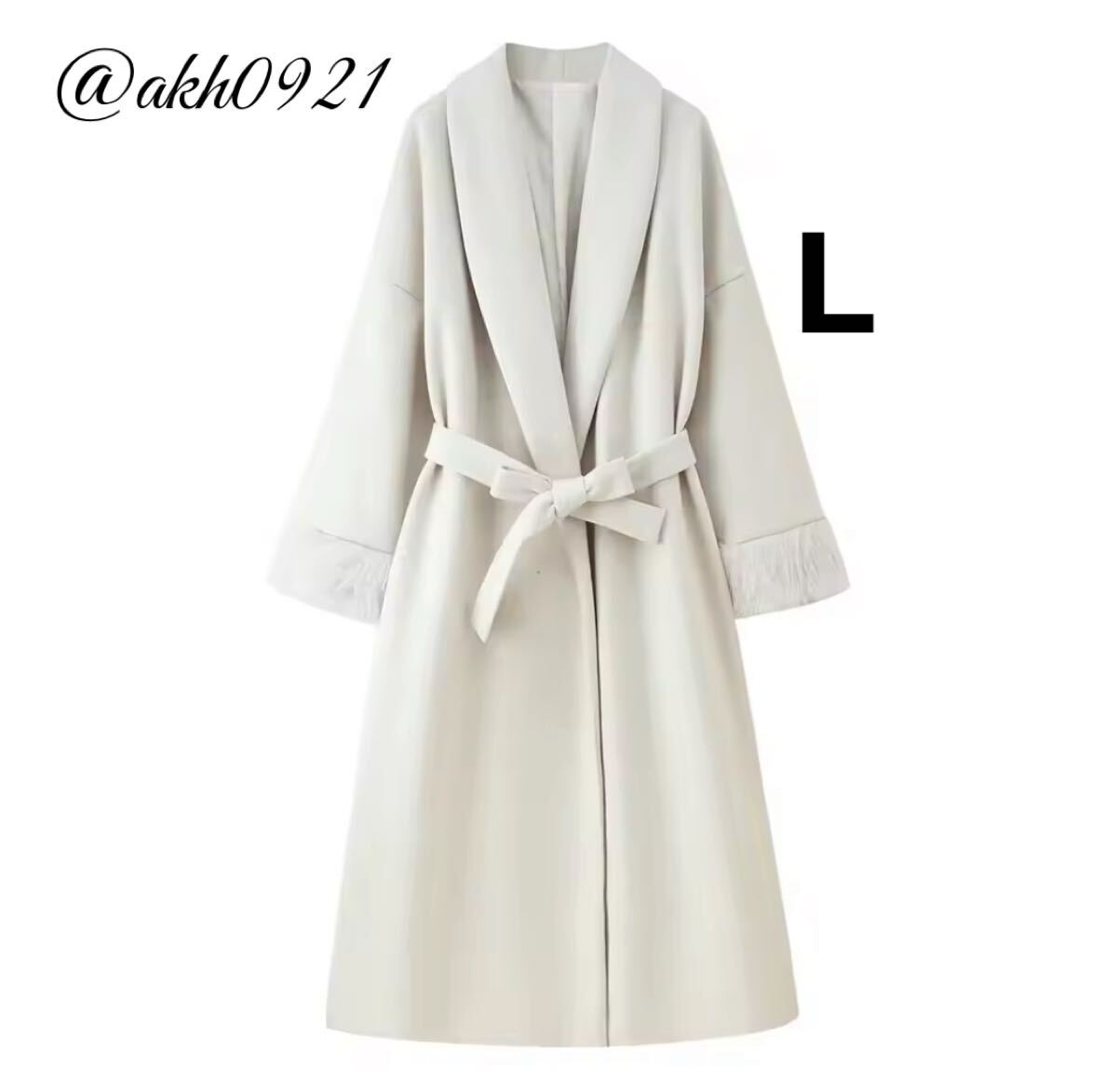 - 新品未使用★2025 A/W 秋新作★vintage ヴィンテージ レトロ ファー ロング ガウンコート アウター Lサイズ レディース★ZARA 好きな方に