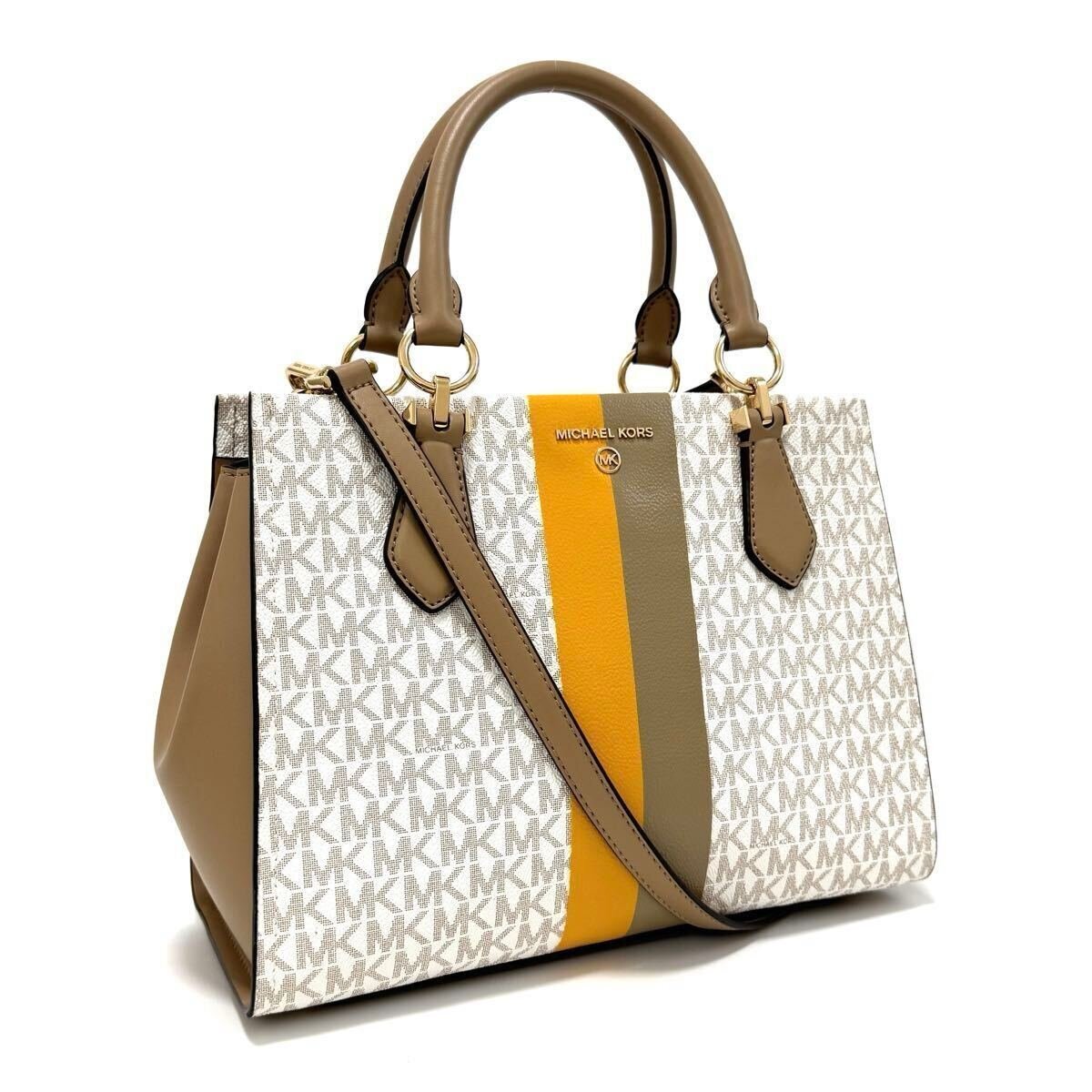 - マイケルコース 2way ハンドバッグ ショルダーバッグ サッチェル ホワイト ブラウン イエロー ゴールド ストライプ レザー MICHAEL KORS
