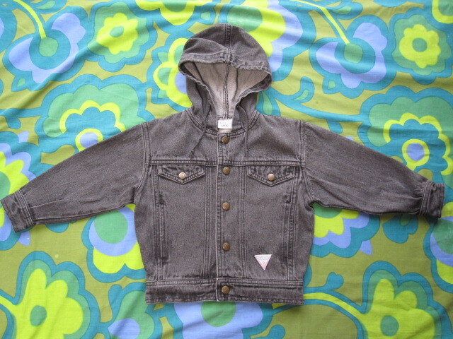- USA製 90s GUESS by GEORGES MARCIANO ゲス ブラック デニムジャケット フード付 キッズ100-110程度 USED ジージャン アメリカ製ビンテージ