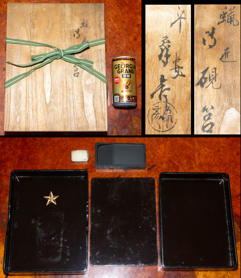 - 象彦 蝋色 硯箱 硯 水滴 共箱 書道具 文房四宝 古硯 古玩 古漆器