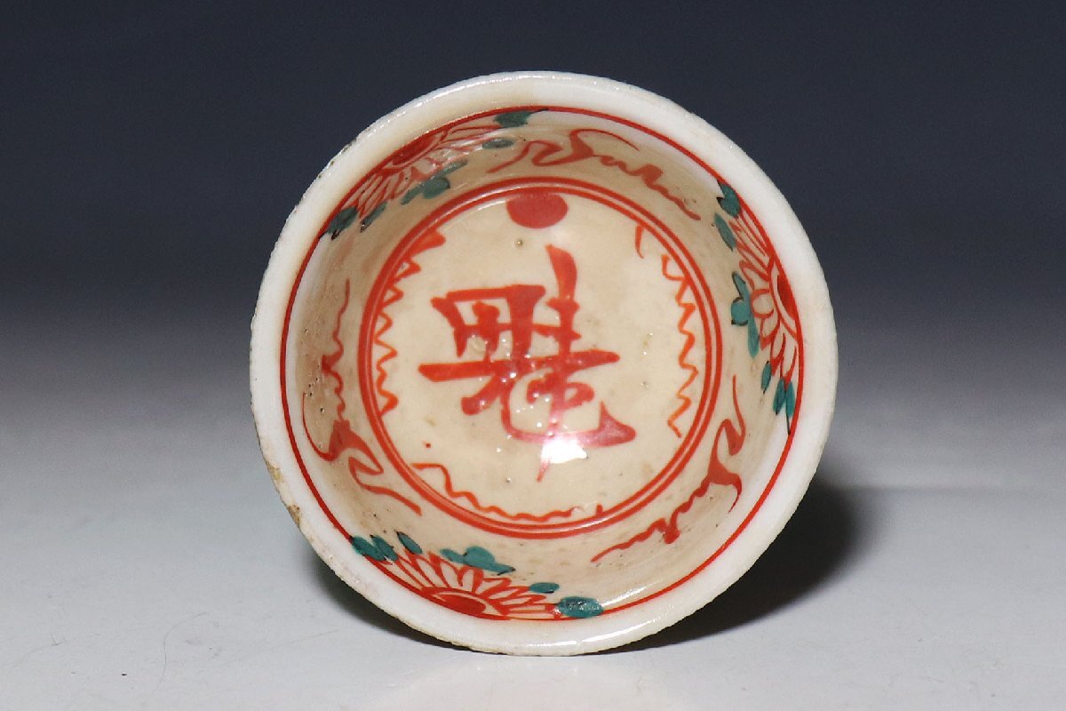 - 【桃】酒器ぐい呑み:三田呉須赤絵牡丹に鳳凰魁図猪口 其の弐