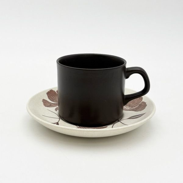 - IZ94679T★J&G MEAKIN カップ&ソーサー 雑貨 レトロ マットブラウン 花 陶器 ヴィンテージ 英国 イギリス 食器 ティータイム