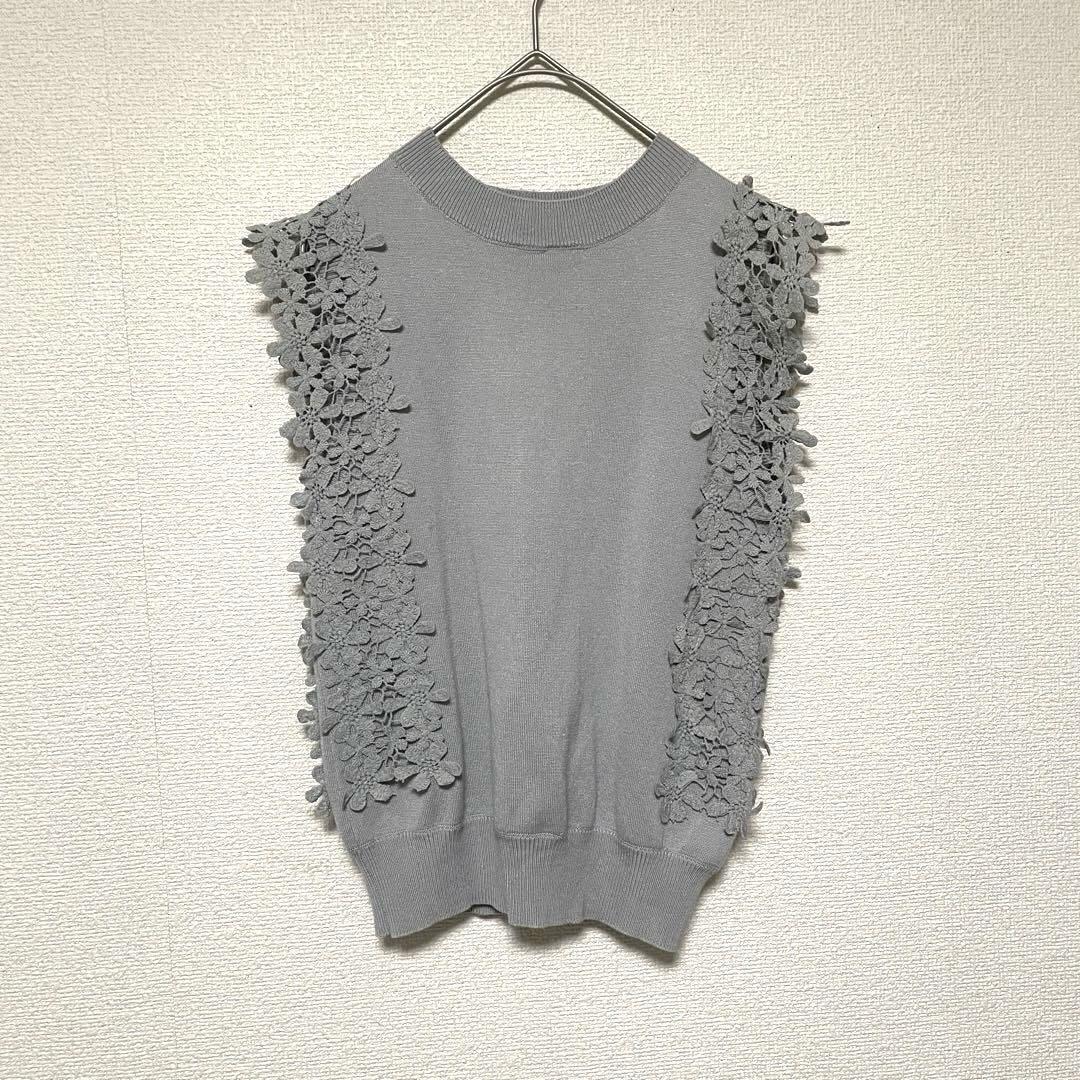 - zo278 r.p.s/ノースリーブニット/トップス/レース×無地/グレー