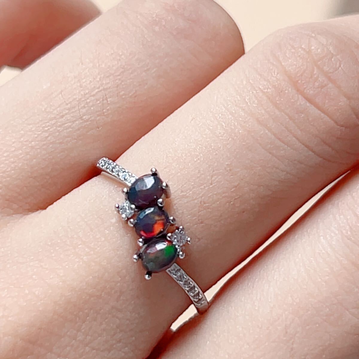 - ◇ブラックオパール(Opal)◇ 遊色効果 が強め◇ キラキラ◇指輪◇パワーストーン◇天然石◇巾着袋付き◇プレゼントに040R101103
