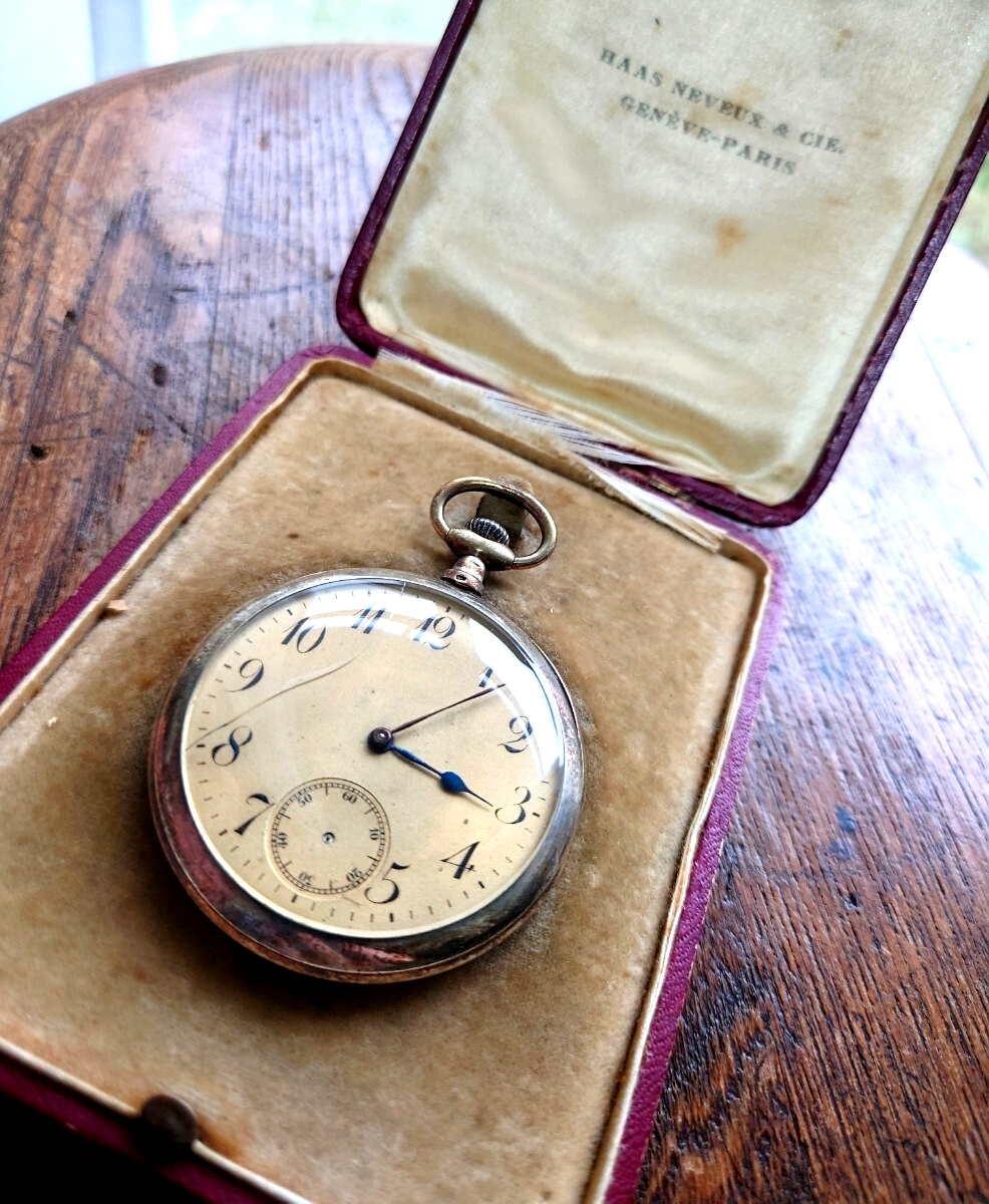 - 純正箱 HASS スイス製ハイグレード 銀無垢 懐中時計 ハイグレード 動作品 アンティーク 手巻き