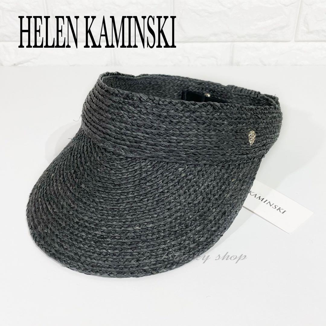- ヘレンカミンスキー DUNNE ラフィア サンバイザー 未使用 タグ付き リボン ロゴ ストロー ハット 麦わら 帽子 UPF 50+ 紫外線 UVカット