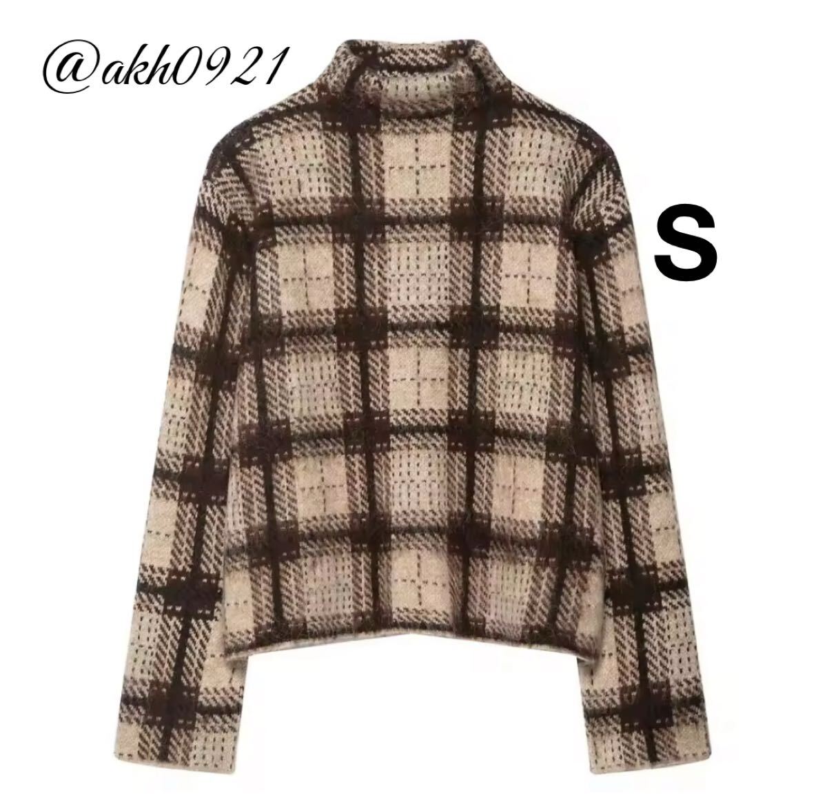 > 新品未使用★2025 A/W 秋新作★vintage ヴィンテージ レトロ チェック 柄 ニット セーター トップス Sサイズ レディース★ZARA 好きな方に