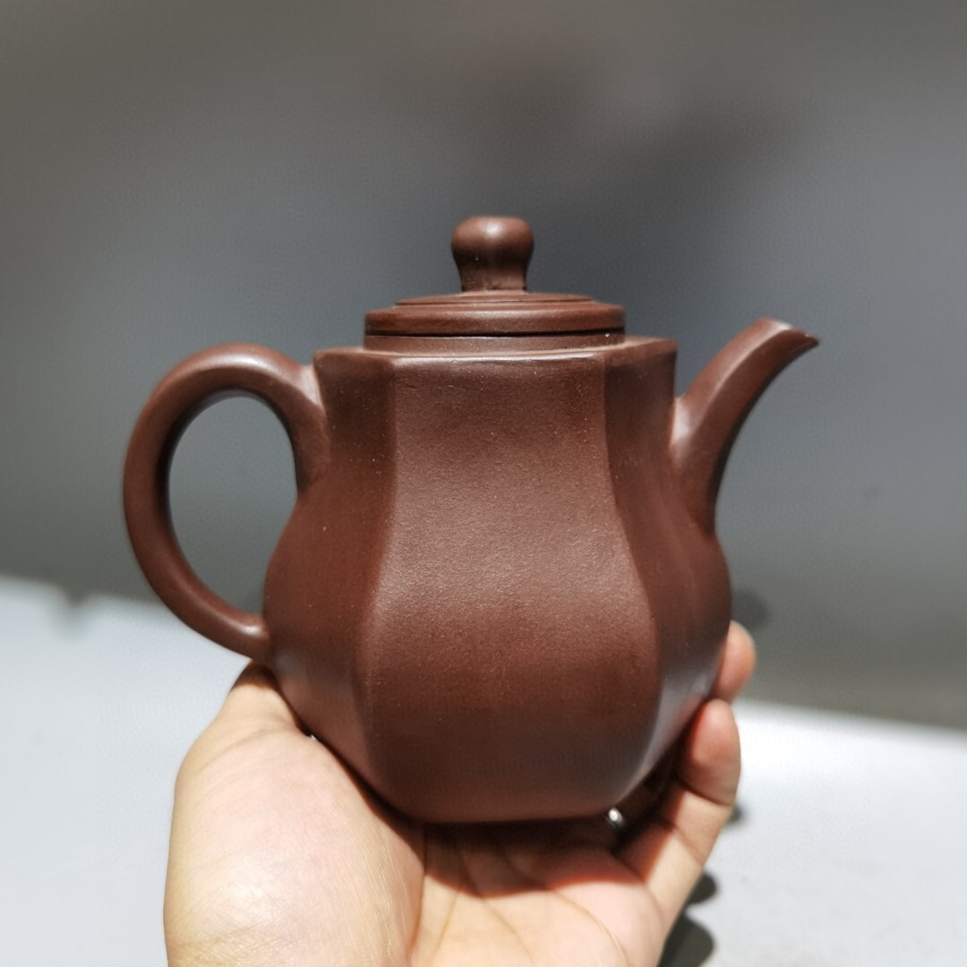 > ▽鴻▽ 紫砂壺 六方壺 金鼎商標款 紫泥 紫砂壺 茶具 茶道品 酒壺 急須 古賞物 古董品 時代物 稀少珍品 中国古玩 中国古美術