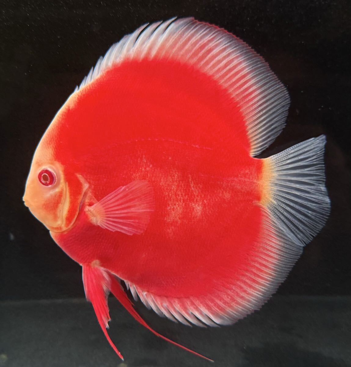 > 【ディスカス・ランク】アルビノスーパーレッド!最高グレードの極上個体!鮮やかな赤が魅力!約12センチ前後!