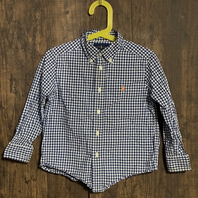 > C43◇RALPH LAUREN | ラルフローレン ギンガムチェック シャツ ネイビー×ホワイト キッズ 110/56サイズ 中古品
